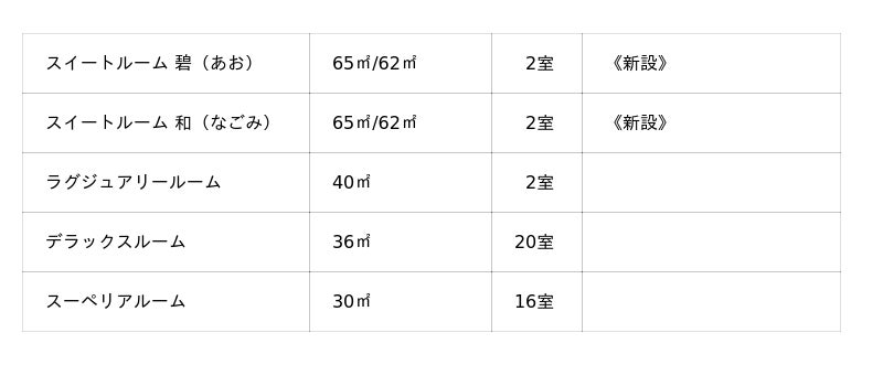 今回の改装により、5~7階が「プレミアムフロア 翠(すい)」として新たに加わります。全客室のバスルームを洗い場付きの独立型へ刷新し、ゆったりと湯に身を委ねるひとときをお楽しみいただけます。さらに、各階に新設した60平方メートル 以上のスイートルームでは、畳を設えた客室をはじめ、小上がり居室やお茶を楽しむ専用スペース、専用洗濯乾燥機、マッサージチェアを備えた客室など、多彩な寛ぎのかたちを取り揃えました。