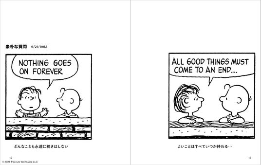 本書には、「ピーナッツ」の中からライナスにまつわる名作コミック45点を厳選して収録。谷川俊太郎による名訳とともに、7つのテーマで構成し、哲学的で優しいまなざしをもつライナスの魅力を多角的に紹介します。