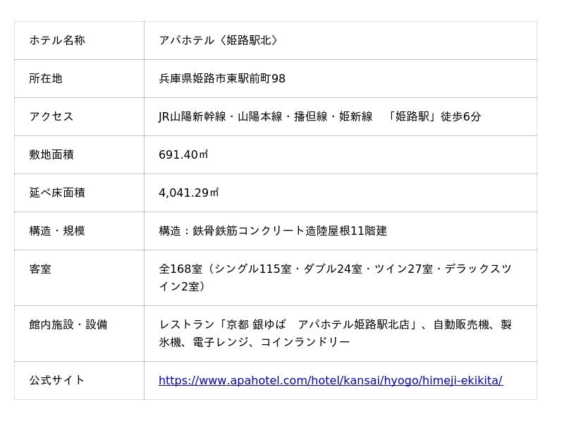 ■「アパホテル<姫路駅北>」施設概要