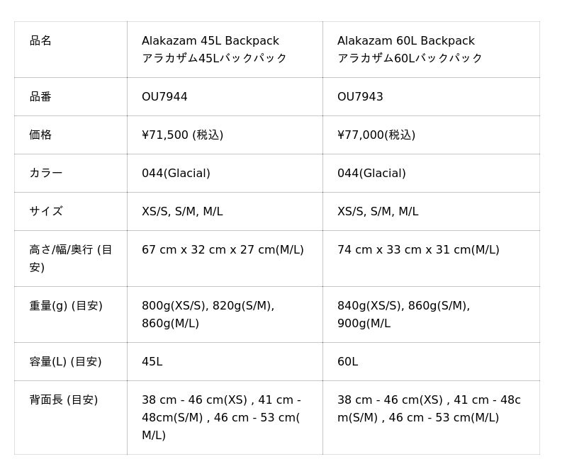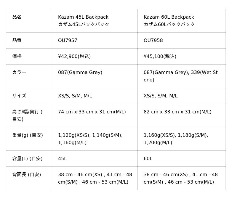1993年にアメリカ・カリフォルニア州で誕生したマウンテンスポーツブランド「マウンテンハードウェア」(株式会社コロンビアスポーツウェアジャパン新宿区新宿6-27-30 7F 代表:マッスィモ ラッザリ)は、多機能ULバックパック「Alakazam 45L / 60L Backpack(アラカザム 45L / 60L バックパック)」と「Kazam 45L / 60L Backpack(カザム 45L / 60L バックパック)」を、公式オンラインストア、各アウトドアスポーツ店にて発売いたします。