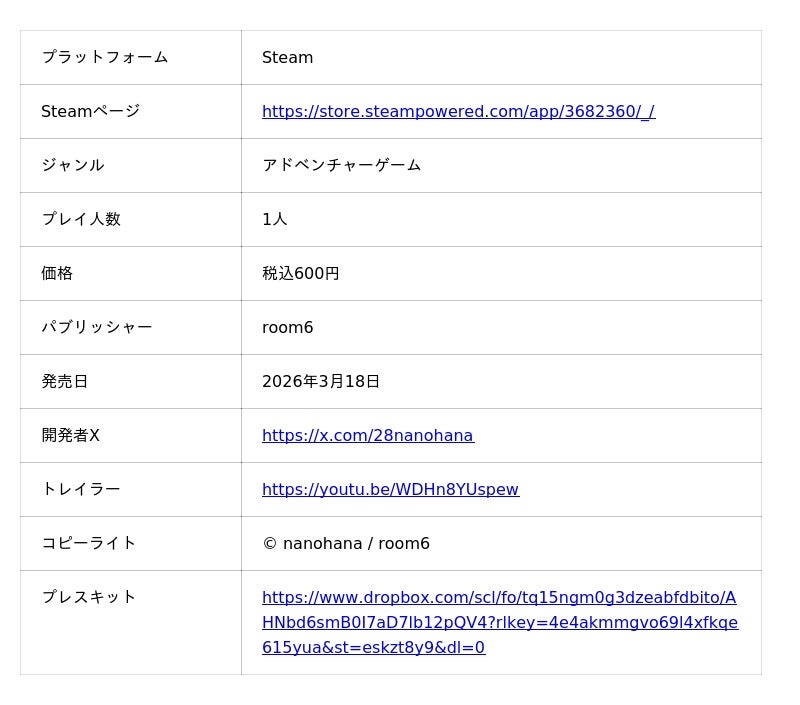 創業以来スマートフォンやNintendo Switch(TM)、Steam(R)向けのゲーム開発、移植、パブリッシュ事業を行っており、第24回文化庁メディア芸術祭の新人賞を受賞した『アンリアルライフ』をはじめとした、世界観に浸れるゲームを集めたレーベル「ヨカゼ」の運営も行っています。自社開発タイトル『ローグウィズデッド』が好評配信中。公式サイト:https://www.room6.net/