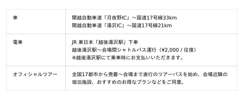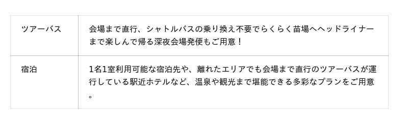 全国17都市から発着~会場まで直行のツアーバスや、お得な限定プランやレンタルテント等、様々なニーズに合わせたプランをオフィシャルツアーセンターにてご用意。3/6(金)12:00~全プラン受付開始です。
