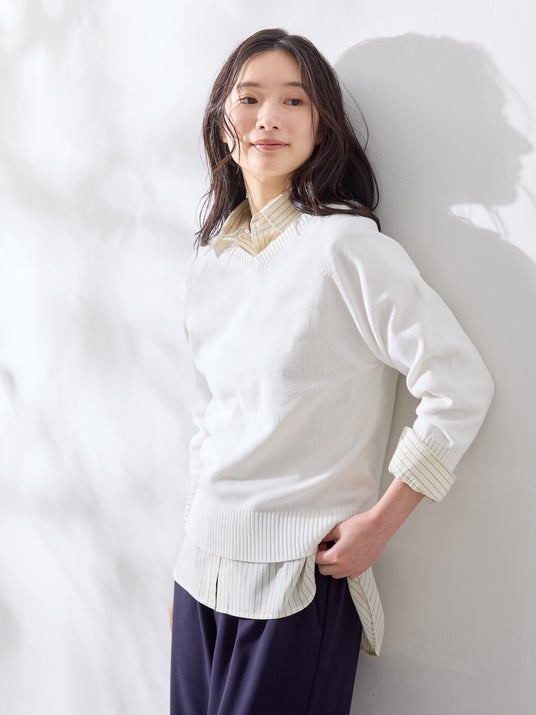 ◆コットンVネックニット