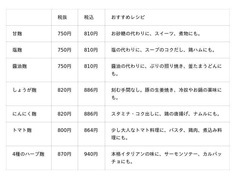 〇商品情報:素材の旨みを引き立てる麹調味料ラインナップ全7種