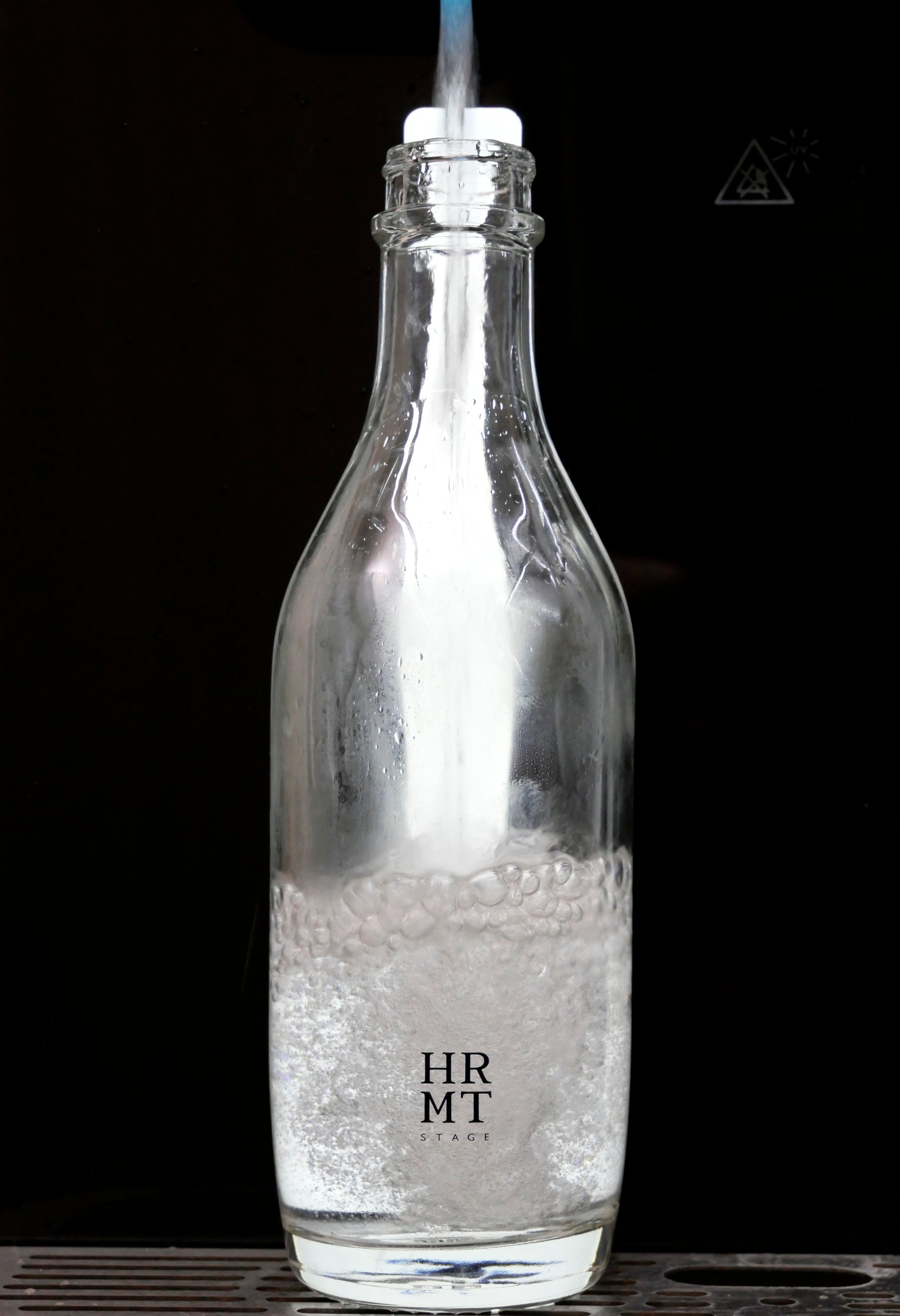 水道直結型ウォーターディスペンサー「Purezza Classe」は、冷水・スパークリングなど多様な飲料を高い品質レベルで提供することを実現します。さらに、「HRMT STAGE」の世界観に調和する専用のリターナブル・ボトルでお客様に提供します。