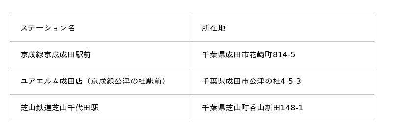 このたび、OpenStreetは公共交通の補完や市民および来訪者の移動の利便性向上などを目的に、シェアサイクルサービス「HELLO CYCLING」のサービスを開始しました。今回、京成成田駅、芝山千代田駅、ユアエルム成田店の3カ所にステーションを設置し、関東鉄道株式会社(茨城県土浦市)が展開する「関鉄Pedal」の電動アシスト自転車を導入します。貸出と返却は成田市と芝山町の3カ所のみ可能で、同自治体のステーションで借りた自転車を他エリアで返却することや、他エリアのステーションで借りた自転車を成田市および芝山町内で返却することはできません。