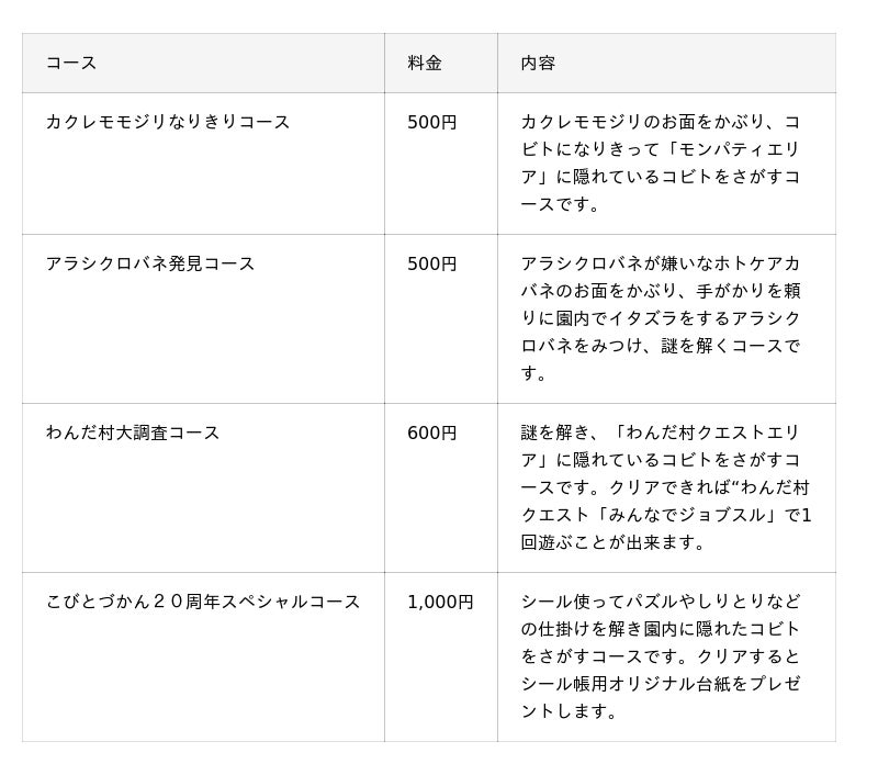 ■「こびとさがしラリー」各コース内容