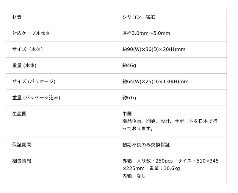 ケーブルをマグネットで挟み込んですっきり整理できるマグネットケーブルクリップです。太さ直径3.0mm~5.0mmのケーブルに対応。