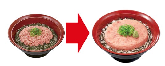 以前はイメージ画像にまぐろたたきをほぐしたものを使用していましたが、提供の際の形状に合わせて画像も円盤状のものに変更! SNSでは「その手があったか」「逆転の発想」と話題になりました。
