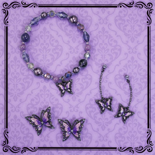 軽やかな透かし模様にパープルグラデーションを重ねた、アイコンである蝶モチーフの定番シリーズ。