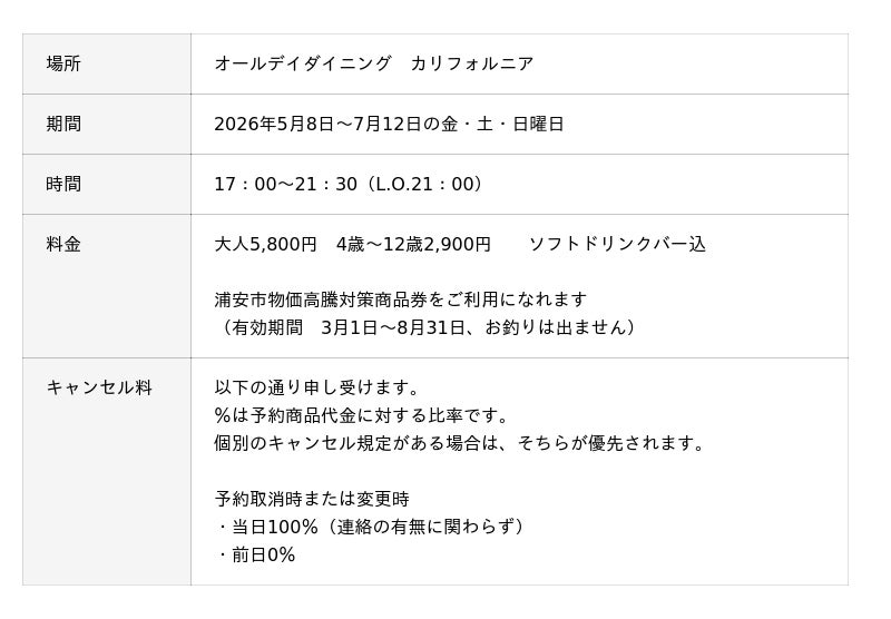 オールデイダイニング カリフォルニア