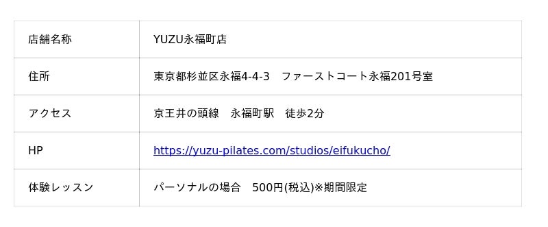 ▶︎https://yuzu-pilates.com/studios/eifukucho/