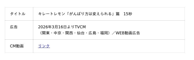 キレートレモン 新CM「がんばり方は変えられる」篇 現代の"頑張りすぎてしまう人"へ向けた、新しいエールを込めて2026年3月16日より放映開始