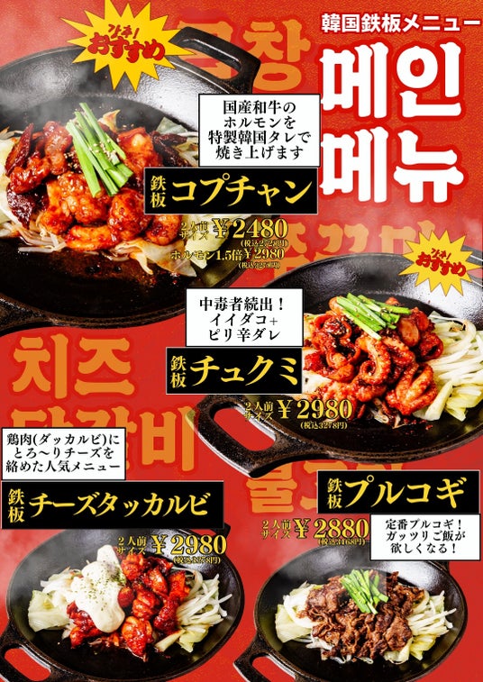 店舗は大阪・梅田の新ランドマーク「イノゲート大阪」内の飲食フロア「バルチカ03」に位置し、今回のリニューアルでは"本場韓国屋台体験"をテーマに店内空間を刷新。韓国から取り寄せた鉄板で提供するライブ感のある料理演出とともに、梅田で気軽に楽しめる韓国グルメ体験を提供します。