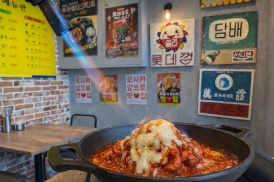当店では韓国から取り寄せた本場仕様の鉄板を使用し、熱々の状態で提供。仕上げに目の前でチーズを炙るライブ演出を行い、味覚だけでなく視覚や香りでも楽しめる"体験型韓国グルメ"として提供しています。