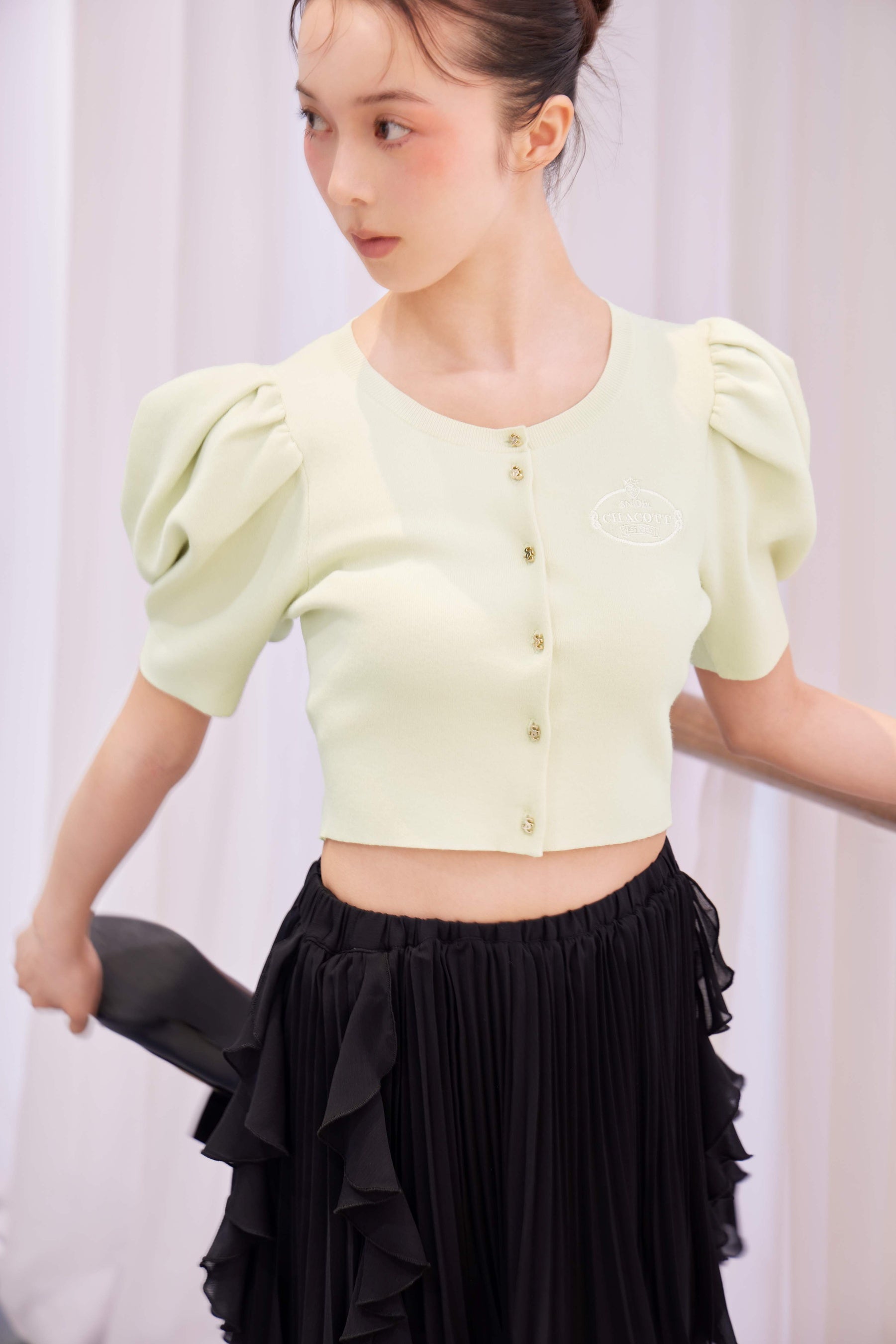 腰回りでふんわり広がるペプラムシルエットには、チュールスカートと同じ素材を贅沢に使用しました。1枚で主役級の存在感を放つアイテムです。