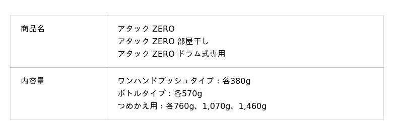 左から、「アタック ZERO」「アタック ZERO 部屋干し」「アタック ZERO ドラム式専用」の各ワンハンドプッシュタイプ