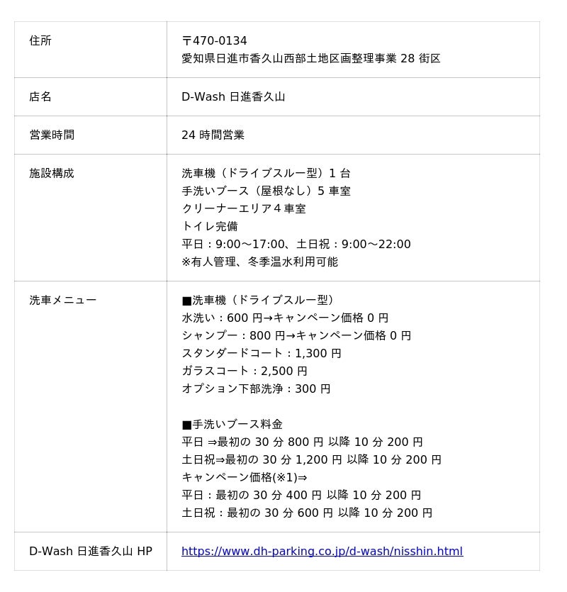 そしてこのたび、当社として愛知県内 3 店舗目となる「D-Wash 日進香久山」を日進市にオープ