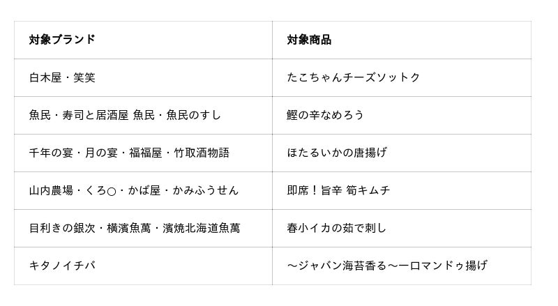販売店舗:全国の(株)モンテローザグループ「目利きの銀次」「横濱魚萬」「濱焼北海道魚萬」の各店舗 業態詳細:目利きの銀次)https://www.monteroza.co.jp/brand/gin/