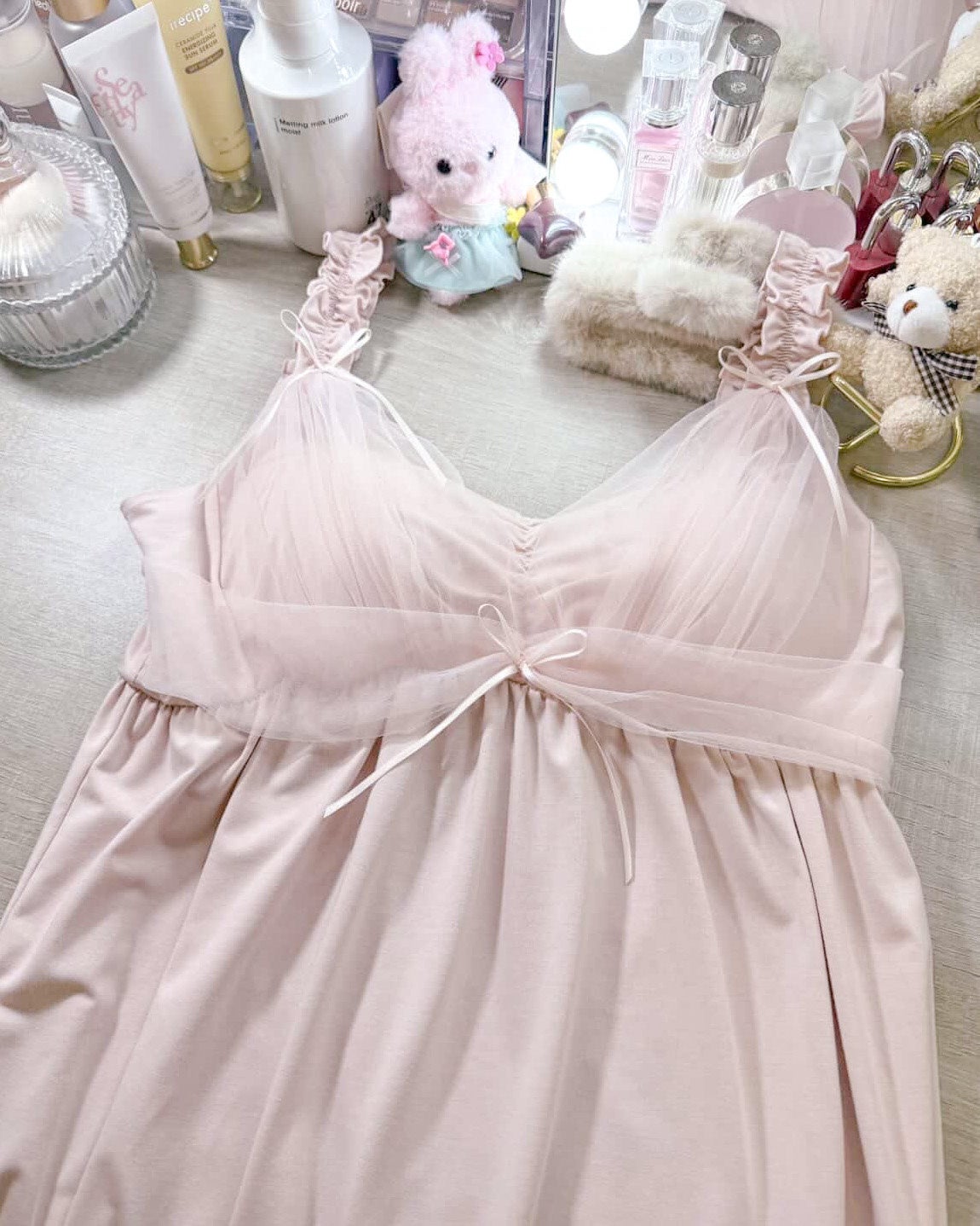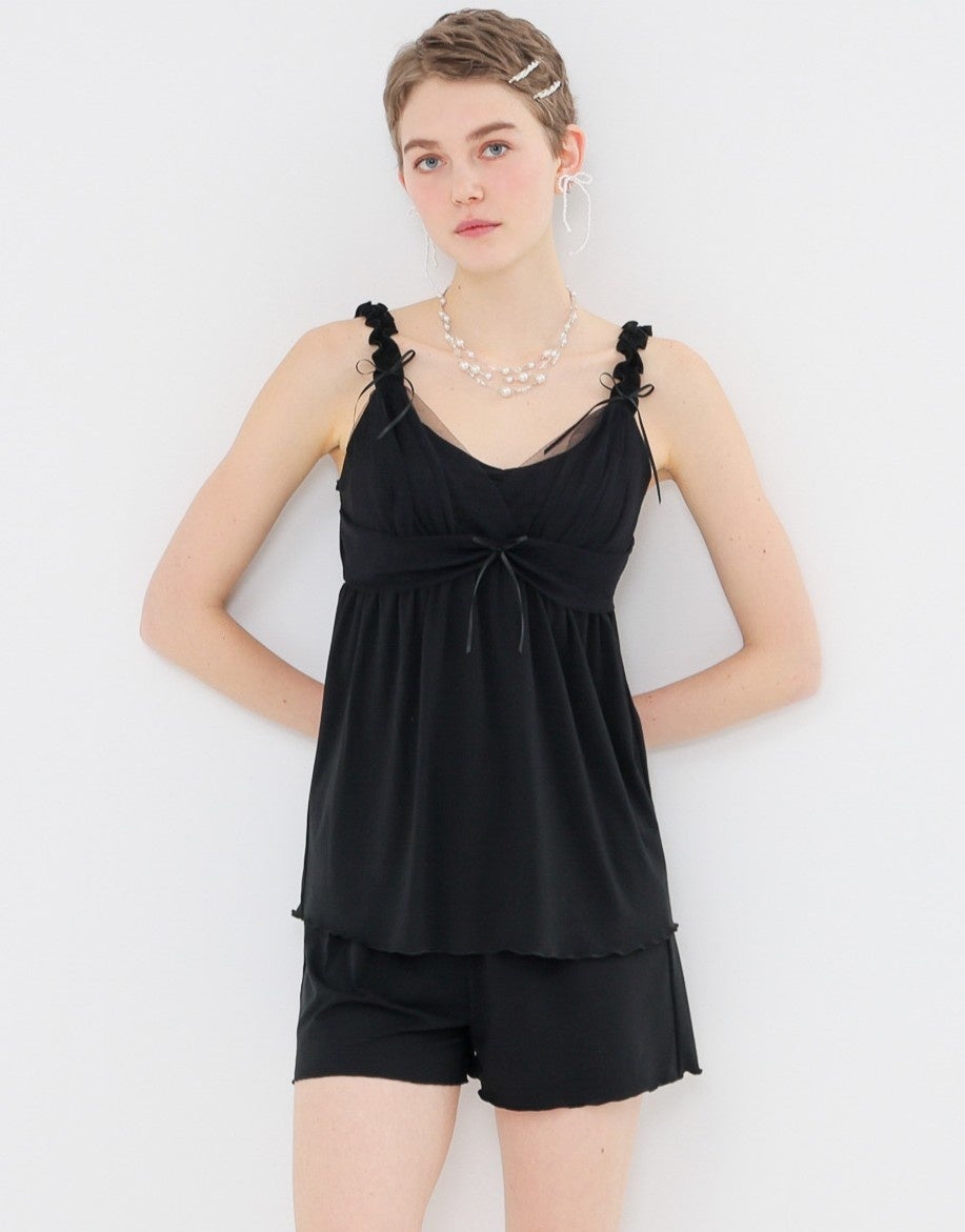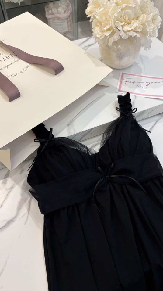 華奢なリボンが甘さを添え、やわらかな肩紐ゴムで負担を軽減。