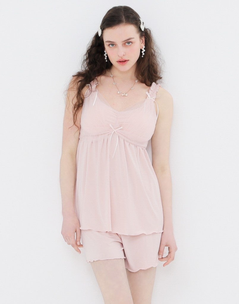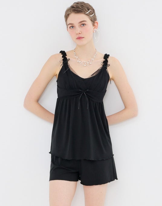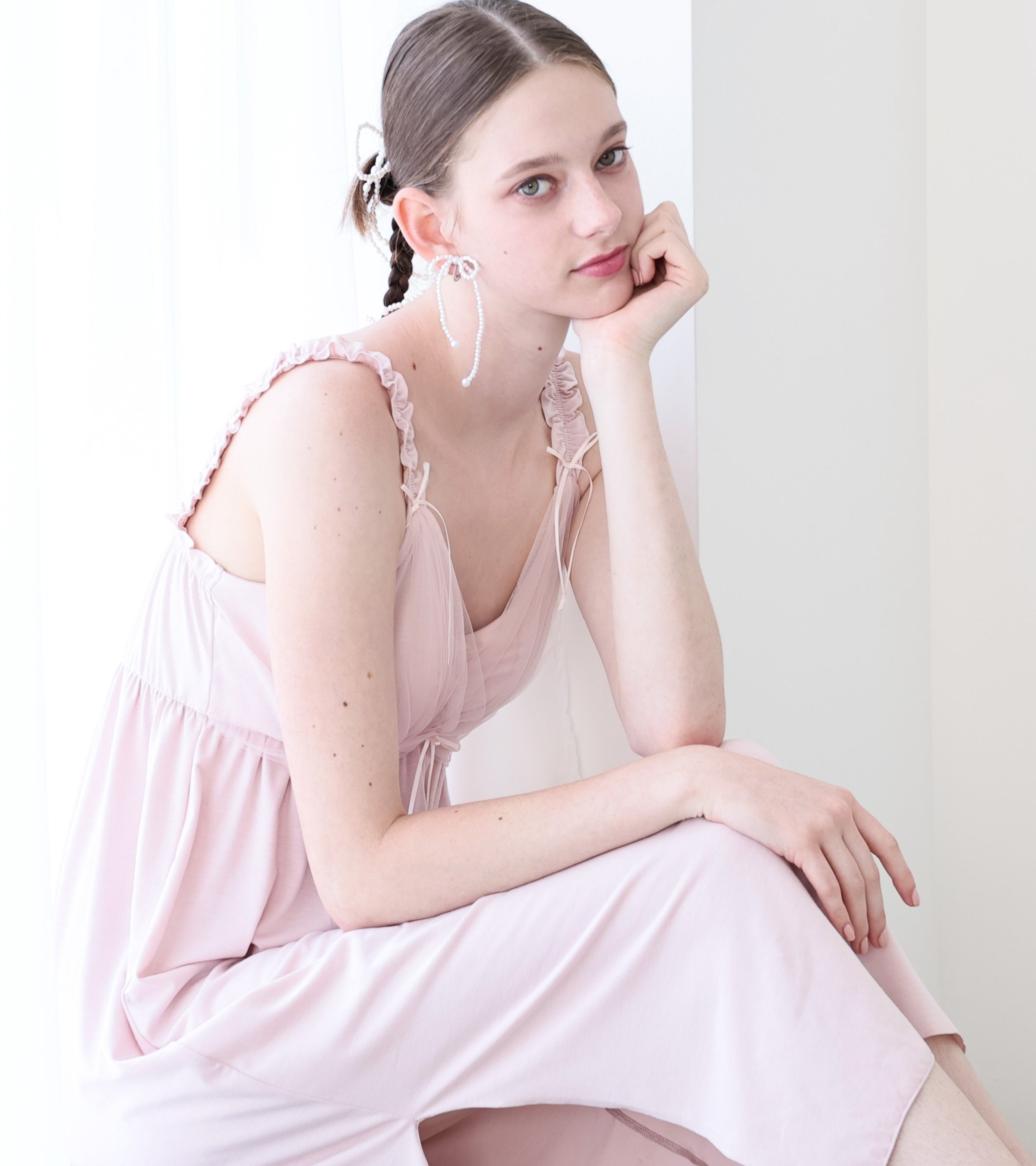 肩先のリボンは甘さをプラス。快適さと可愛さを両立しました。