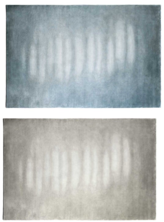 シルク100%の手織りで仕上げられ、同系色のグラデーションによる2色のカラーバリエーションを展開しています。アートとクラフツマンシップが融合したラグジュアリーな一枚です。