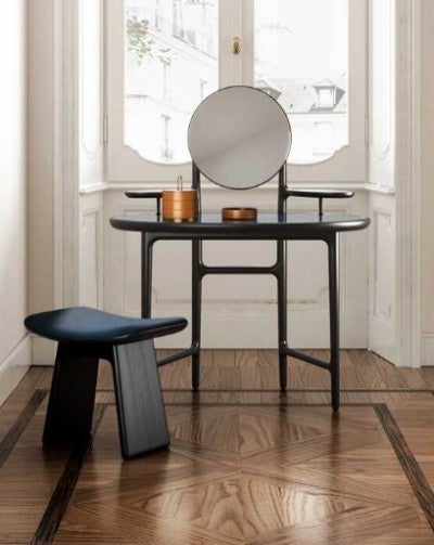 エレガントで洗練されたデザインのドレッシングデスク。無垢のアッシュ材を使用し、やわらかな曲線を描くフレームが優雅なシルエットを生み出します。