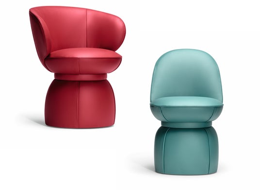 柔らかなプリーツやクラシックなステッチなど、仕立ての美しさを想起させるディテールが特徴です。女性のドレスを思わせる優美なシルエットと、ウエストを引き締めるようなレザーバンドのアクセントが、洗練された存在感を生み出しています。ベースは固定式、回転式、キャスター付きの3タイプを展開しています。張地はPelle Frau(R)レザーやファブリックなど多彩な組み合わせからお選びいただけます。