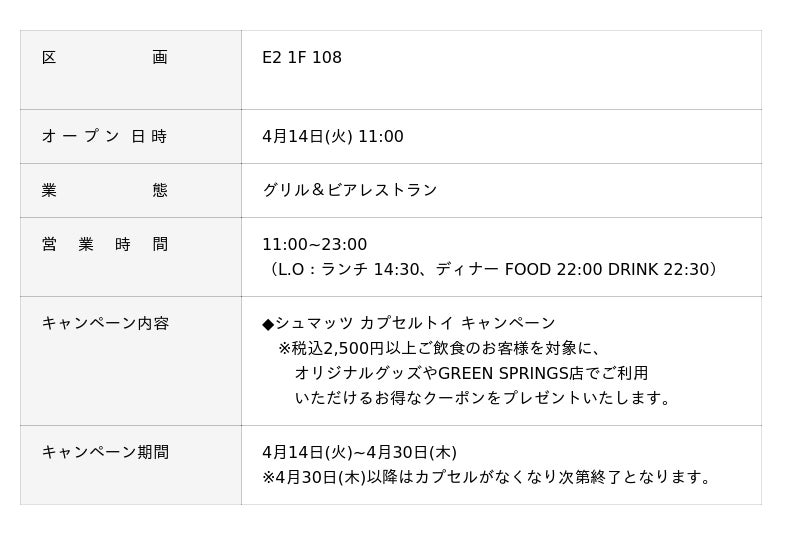 今回のリリースでは、新規ショップのオープン日や出店区画、お得なキャンペーンや一推し商品情報など、オープンが待ち遠しくなるような最新情報をお届けします。