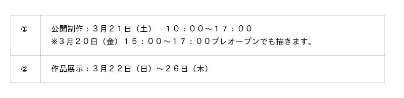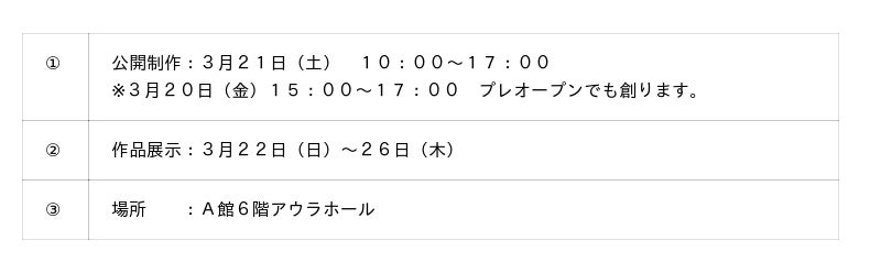 1.日時:3月21日(土)~3月22日(日)10:30~16:00
