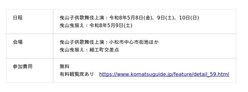 【石川県小松市】歌舞伎のまち小松で「お旅まつり」を楽しもう