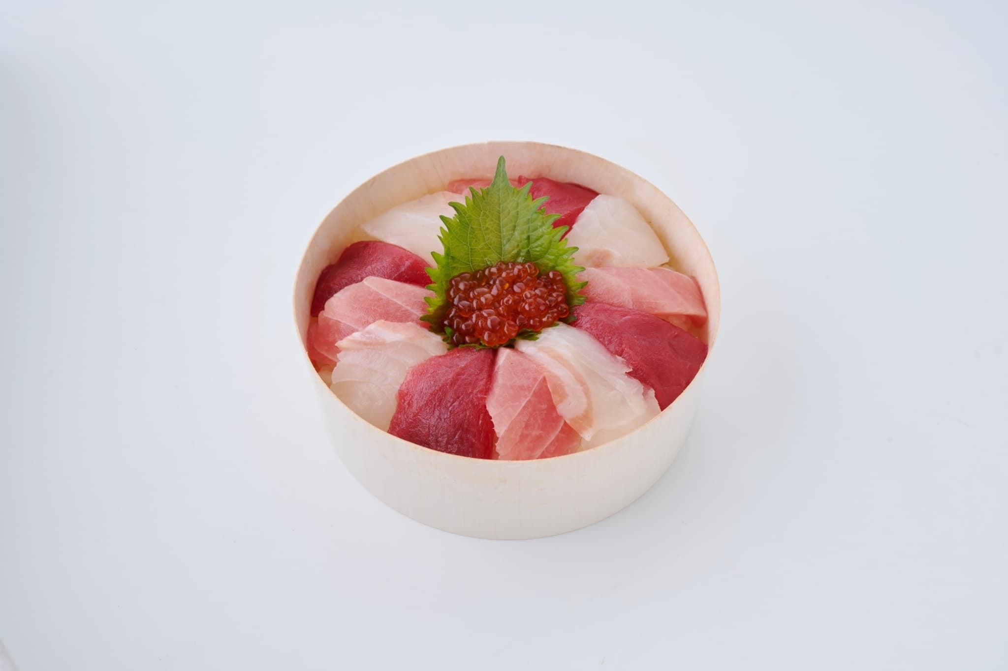 天然まぐろの赤身・中トロ・鯛の春限定海鮮丼。可愛いお花をモチーフにしました。