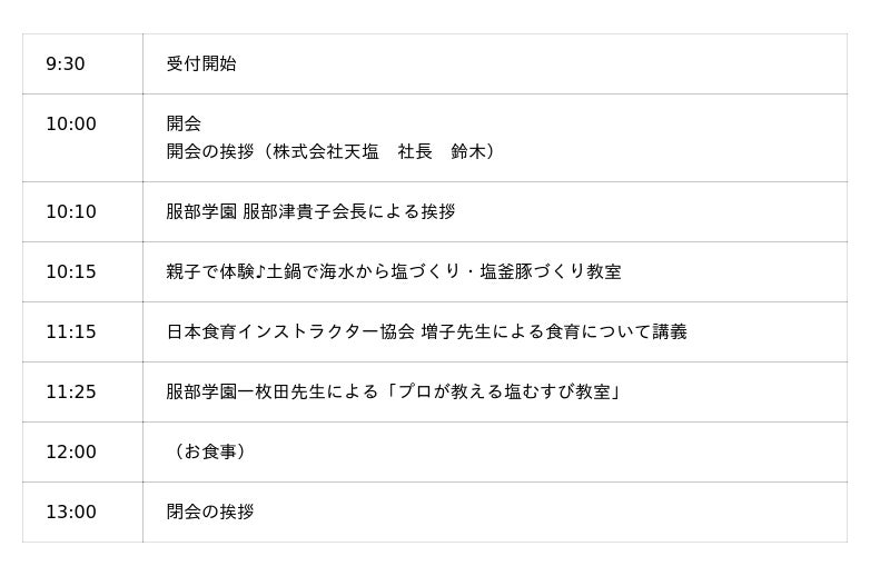 「プロが教える塩むすび教室」 タイムスケジュール