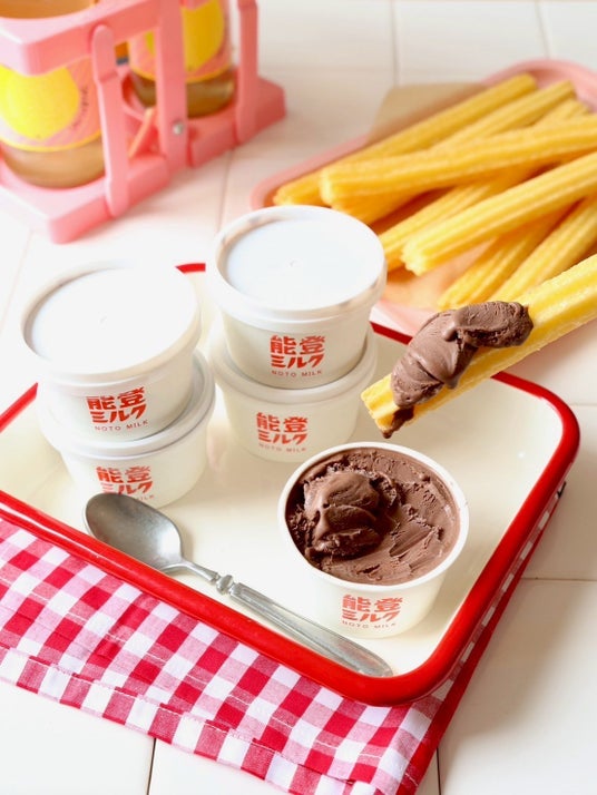 能登ミルクジェラート‐チョコピーナッツ味‐能登の企業同士のコラボレーションによって生まれた能登ミルクジェラート。