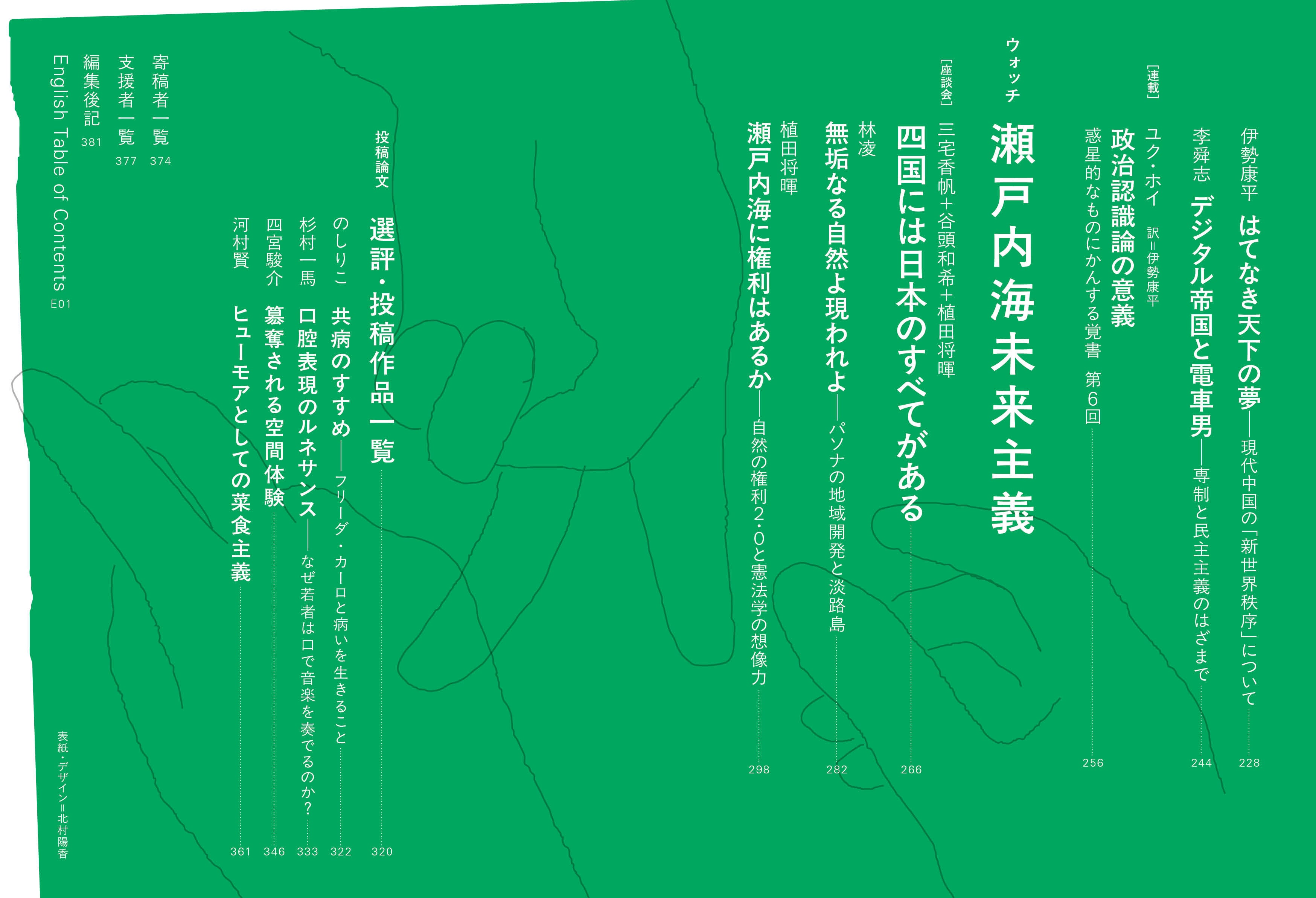 植田将暉 うえた・まさき99年生。編集者、法学研究者。2021年より株式会社ゲンロンに勤務。早稲田大学大学院法学研究科博士後期課程在学中。著作に「21世紀の「自然の権利」と大地の人類学」(『文化人類学研究』25巻)など。