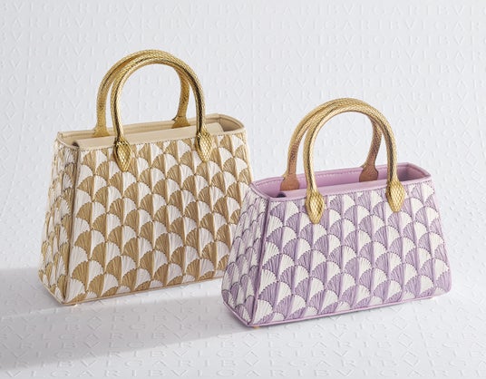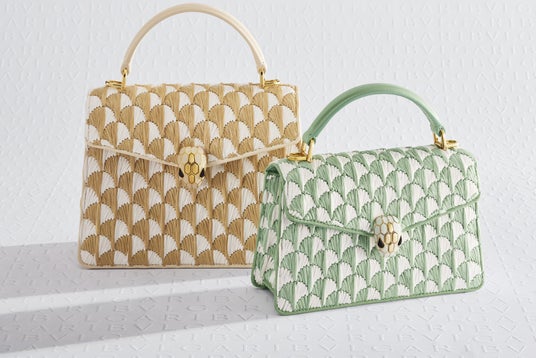 今シーズンも、古代ローマの断片からインスピレーションを得たシグネチャーである"カラ"パターンのバッグが登場し、新たな素材の探求が続いています。この「カラ」パターンは、ブルガリが丹念に修復したカラカラ浴場の象徴的なモザイクから着想を得ています。これは、メアリー・カトランズがアクセサリーカテゴリーにおいてフェミニニティと普遍性のアイコンとして導入したパターンでもあります。