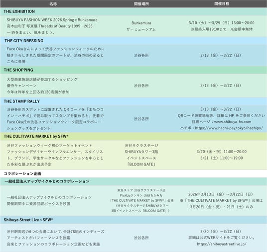 ~ヒト、モノ、コトを「CULTIVATE」 今春も渋谷の街を舞台に多様なコンテンツを発信~『渋谷ファッションウィーク2026春』本日スタート! 会期:2026年3月13日(金)~22日(日)