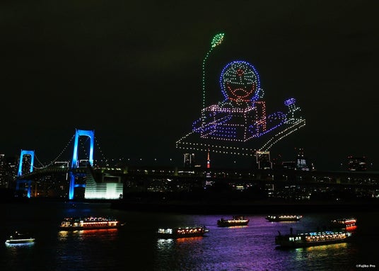 ドローンショーにてアニメに先駆け「日本会場オリジナルドラえもん」が夜空へ!