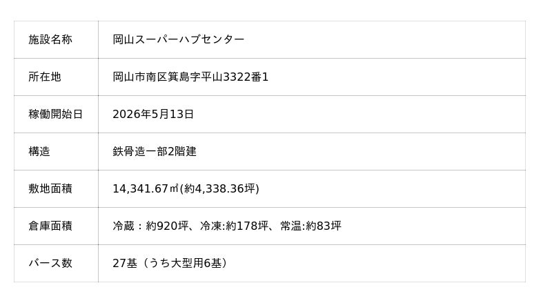 本センターは、岡山地区に点在していた2つの物流拠点を集約し、広域配送ネットワークの最適化と、将来の事業拡大に備えた冷凍・チルドの保管能力強化を実現する、当社にとって戦略的な中核拠点となります。