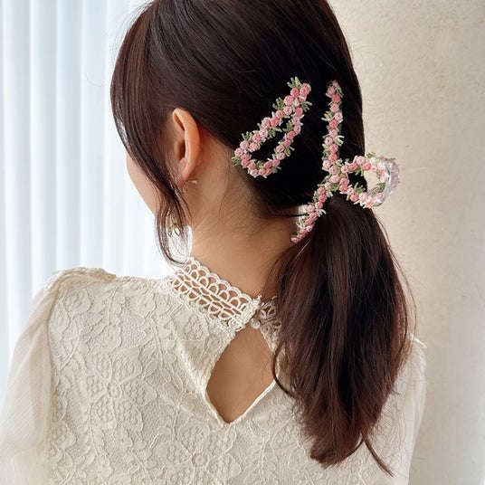 商品名:フラワー刺繍バンスクリップ