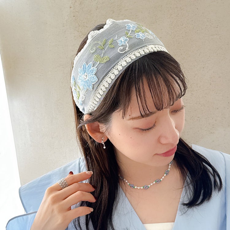 商品名:フラワー刺繍シアーカチューシャ