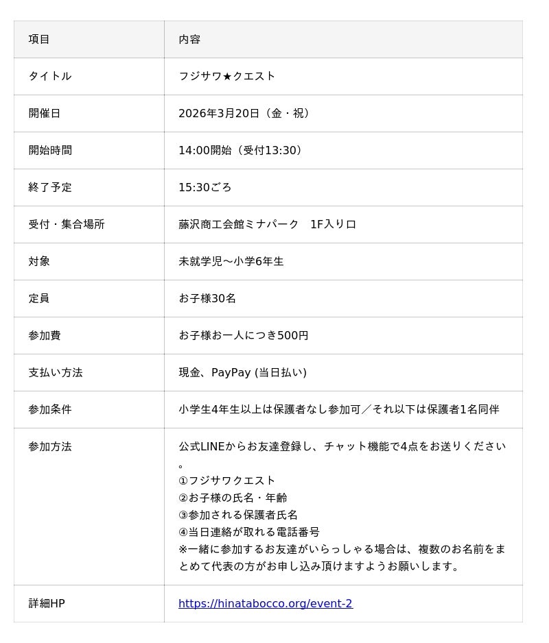 【3月開催・募集中】フジサワ★クエスト