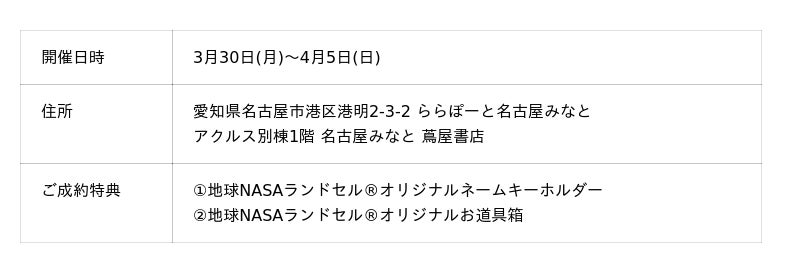 愛知・名古屋みなと 蔦屋書店にて【地球NASAランドセル(R)受注会】を開催します!