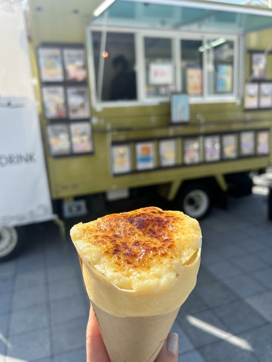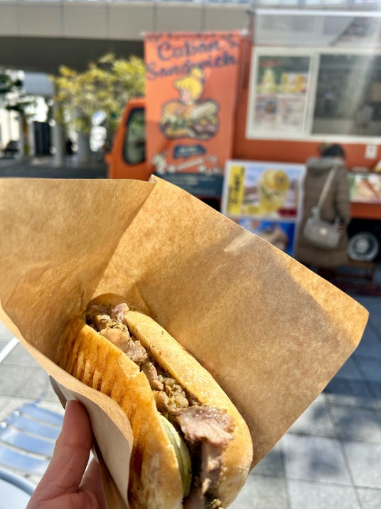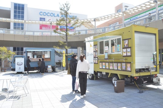 初日となった3月5日には、焼きラーメンやスープカレー、ケバブサンド、たこ焼き、ティラミスパフェの多彩なキッチンカーが集結。昼頃から買い求める人が訪れました。