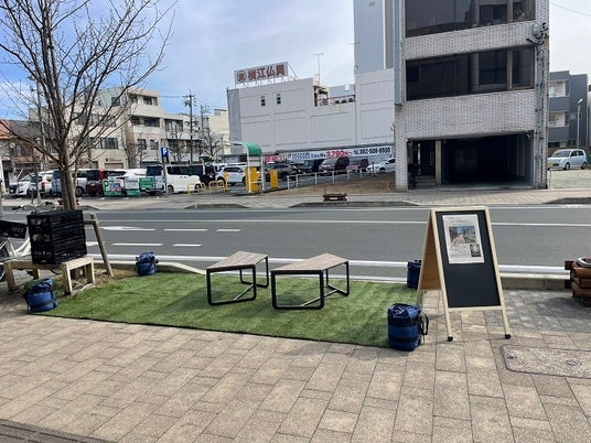 中心街の「萱町通り」などの歩道では、3月19日(木)までの1カ月間、人工芝やテーブルセットを配置した「居心地の良い空間」の創出に向けた取組を試行実施しています。
