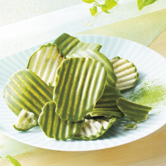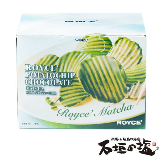 さわやかな苦みや渋みを持つ抹茶と濃厚な旨みや甘みを持つ抹茶の2種類をブレンドしたチョコレートを、「石垣の塩」を使ったポテトチップの片面にコーティング。チョコレートに隠し味のピスタチオペーストを加えることで、抹茶の風味にコクをプラスしています。