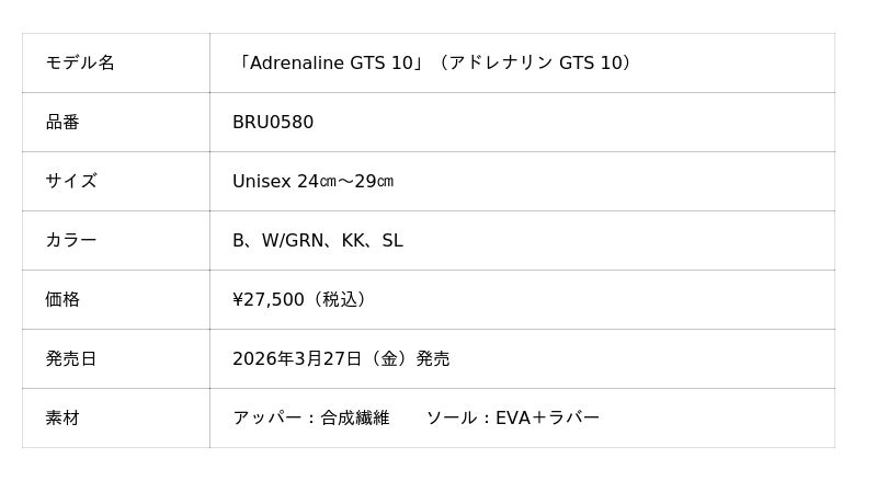 米国ランニングシューズブランド「BROOKS(ブルックス)」は、アーカイブから復活したアイコニックなモデル「Adrenaline GTS 10(アドレナリン GTS 10)」を、2026年3月27日(金)よりBROOKS公式オンラインショップおよび限定店舗にて発売いたします。