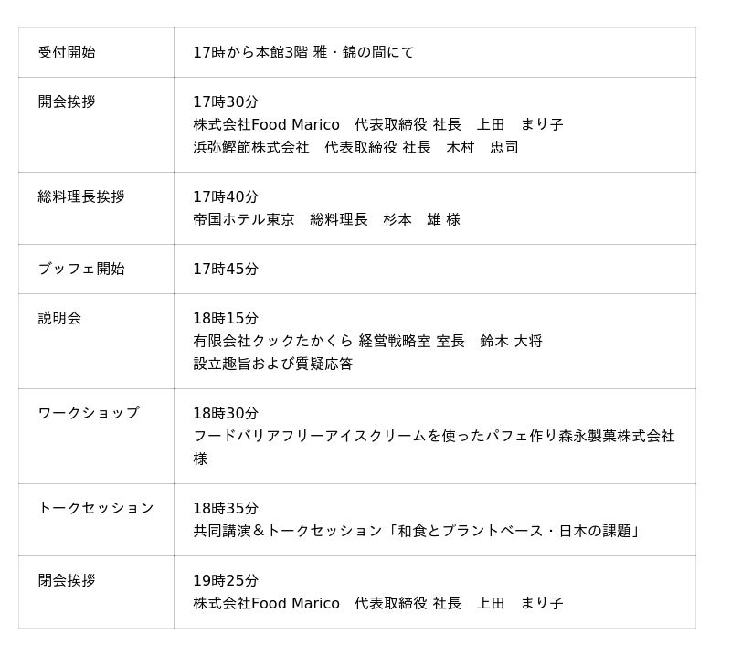 浜弥鰹節株式会社は、78年の歴史を持つ鰹節の老舗が、和食の未来のために植物性100%・動物性原料・着色料・香料不使用のかつお風味だし「MAGIDASHI」を開発した会社で、【のあれキッチン】の理念に共感を頂き今回のフードバリアフリーブッフェとアライアンス説明会の開催に至りました。