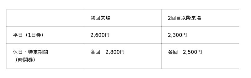 大人・子ども 同一料金(0歳は無料) ※税込価格