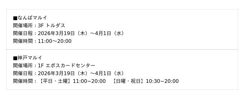 開催場所:なんばマルイ 3F イベントスペース